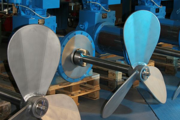 侧入式搅拌装置的材质应能满足防腐和磨损的要求,一般搅拌桨叶需采用超级奥氏体双相不锈钢或碳钢衬胶,而搅拌轴至少宜采用1.4529以上材料。